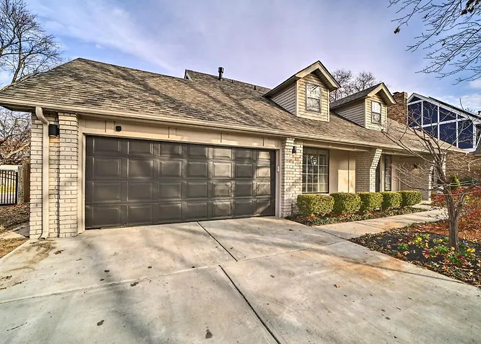 Offering a Jacuzzi for a relaxing experience, the welcoming Immaculate Woodland View Retreat With Hot Tub Villa Tulsa is located 15 minutes' drive from Oral Roberts University. Providing guests with Wi-Fi and parking, the 3-bedroom villa is 7 km from Sherwin Miller Museum of Jewish Art.